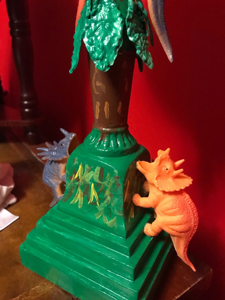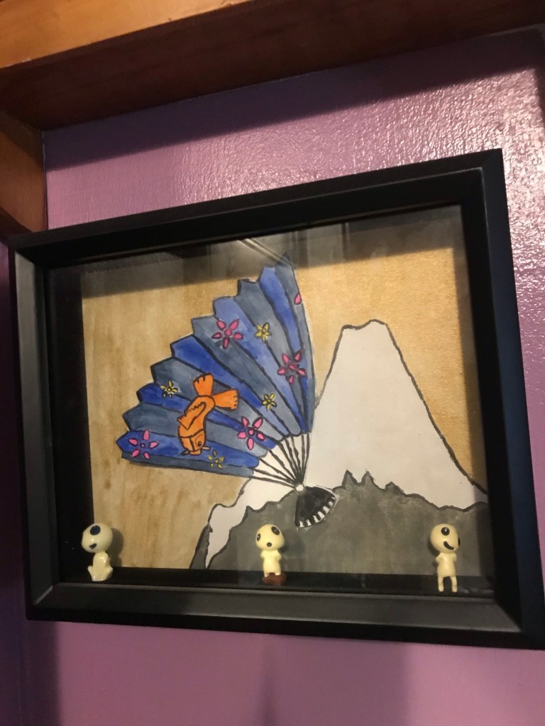 An art piece I made using mixed media. The figurines on the bottom are from princess Mononoke. They are tree spirits. I added them to add some definition to the piece